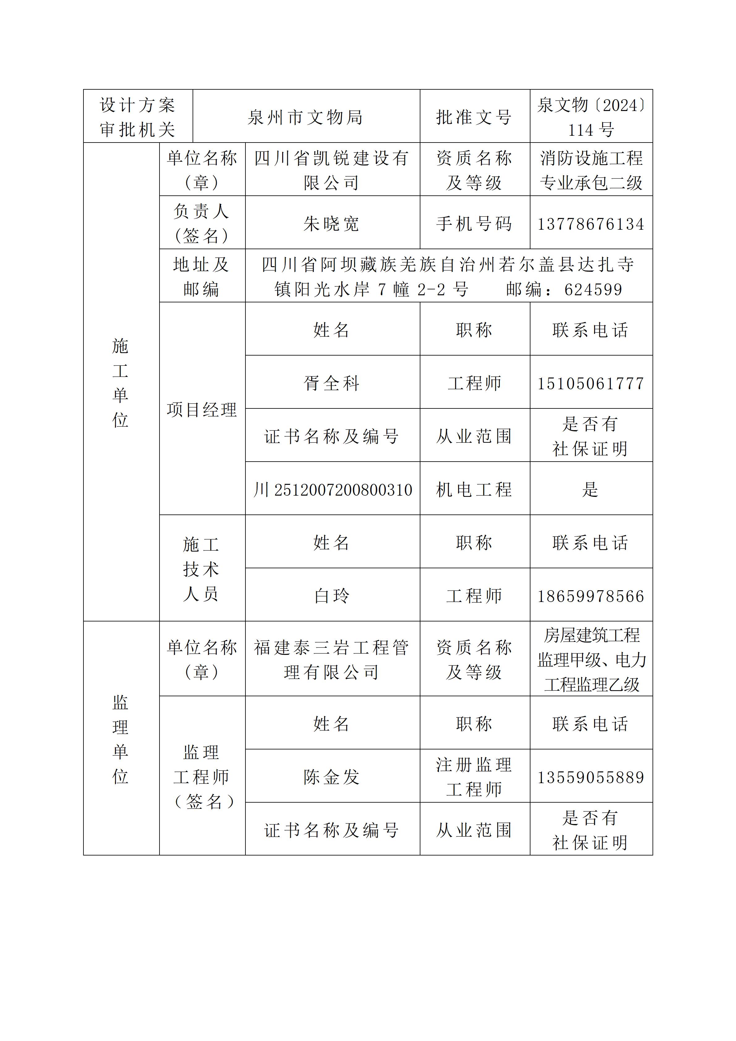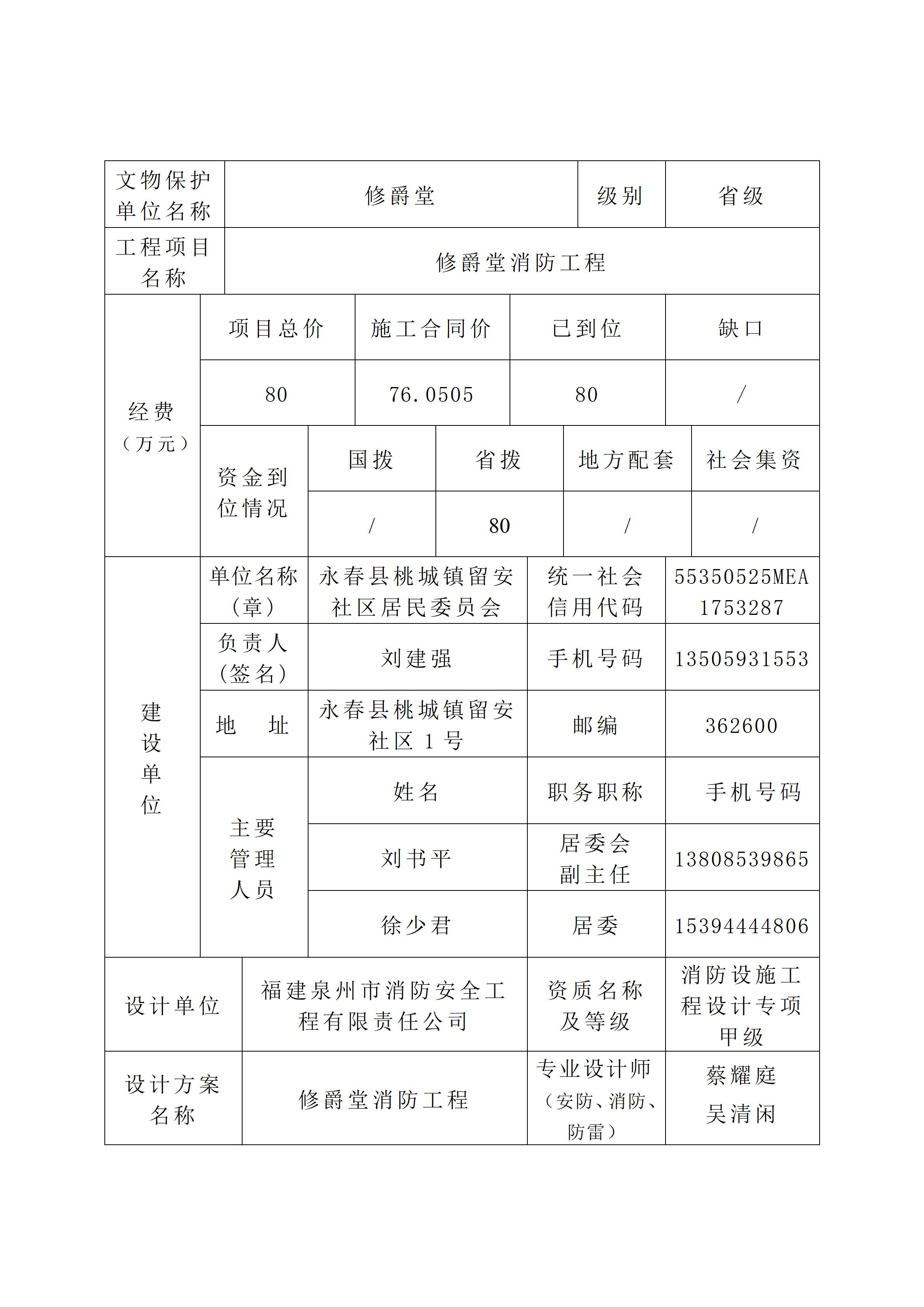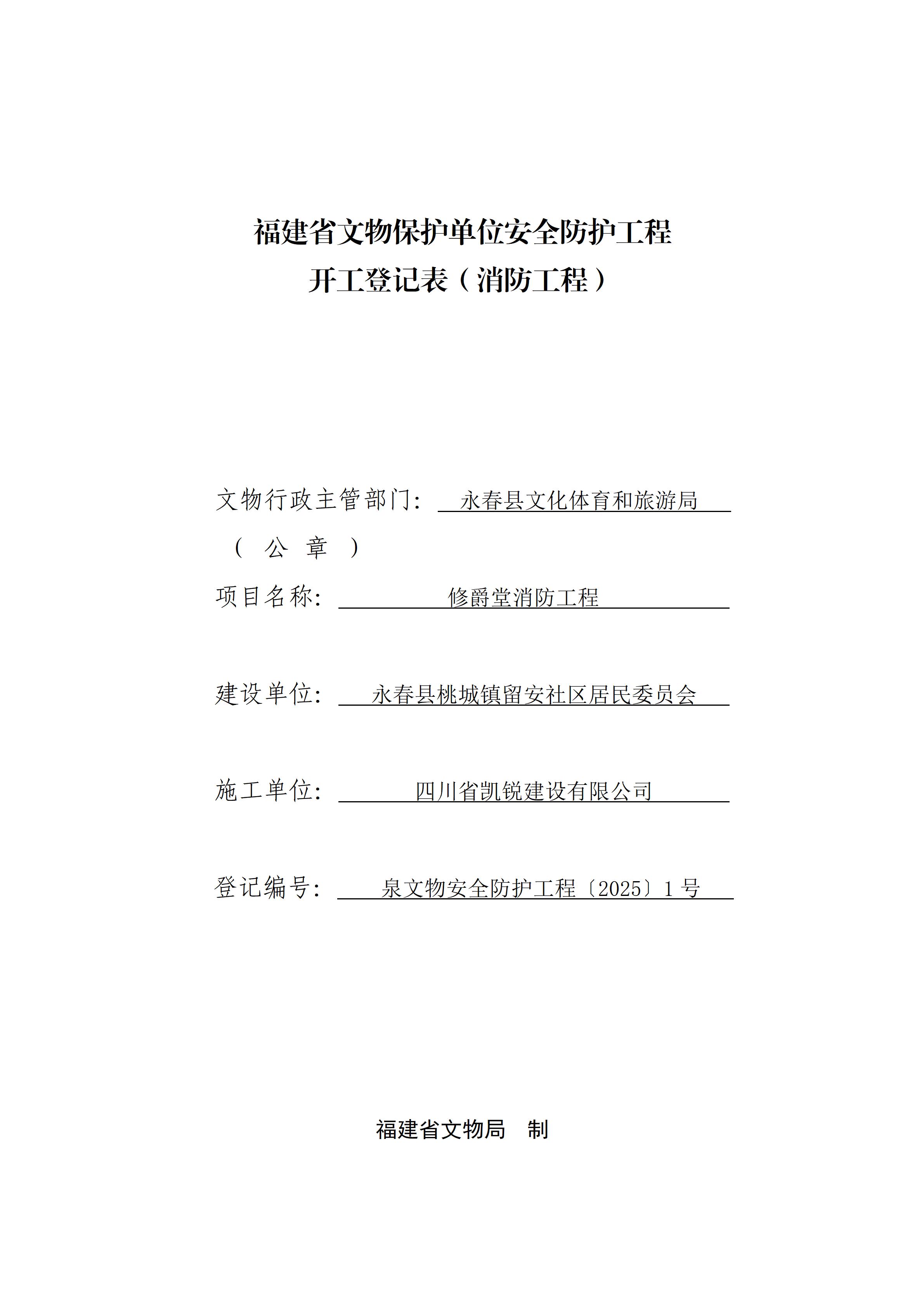 修爵堂消防工程开工登记表(泉文物安全防护工程〔2025〕1号)