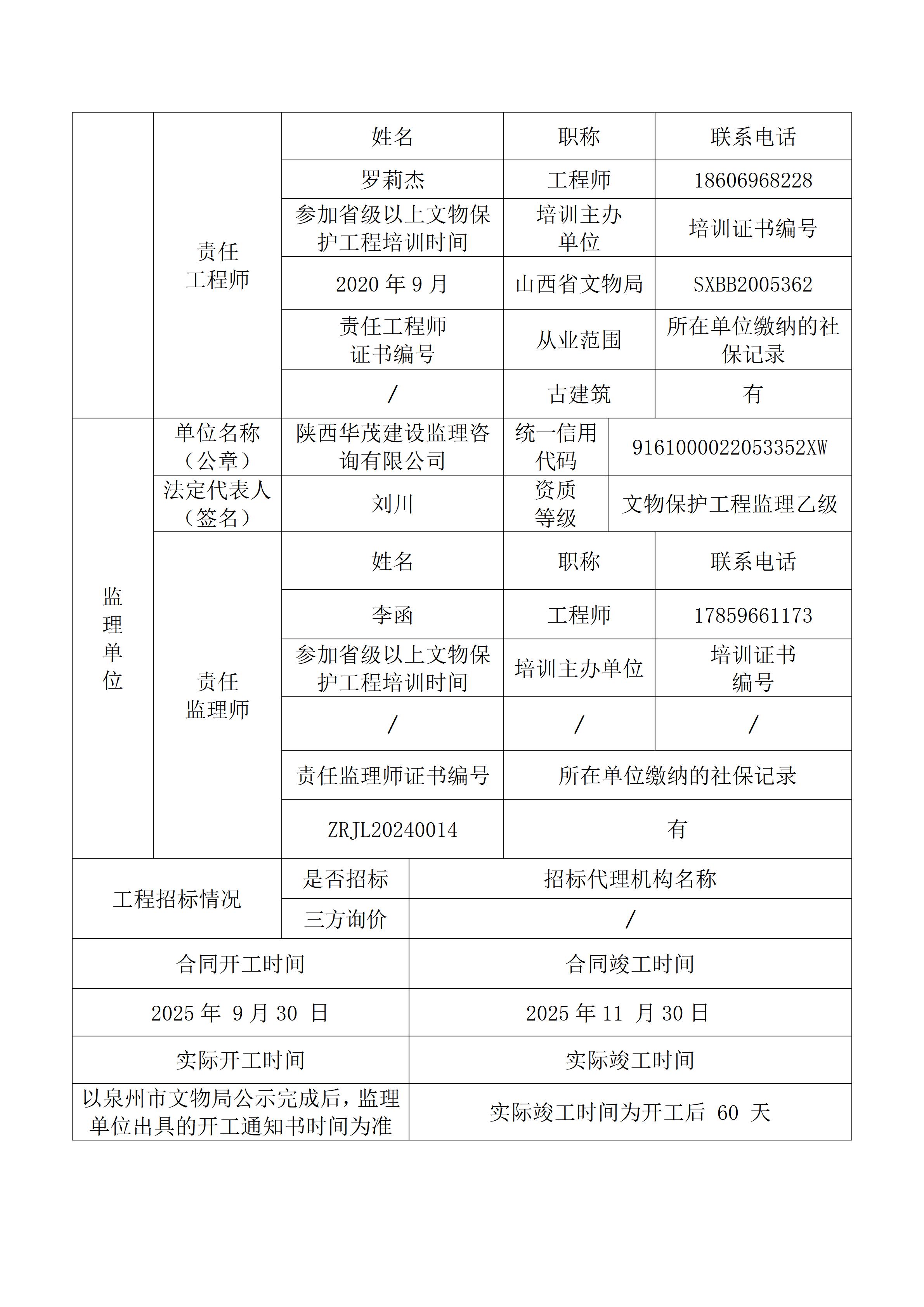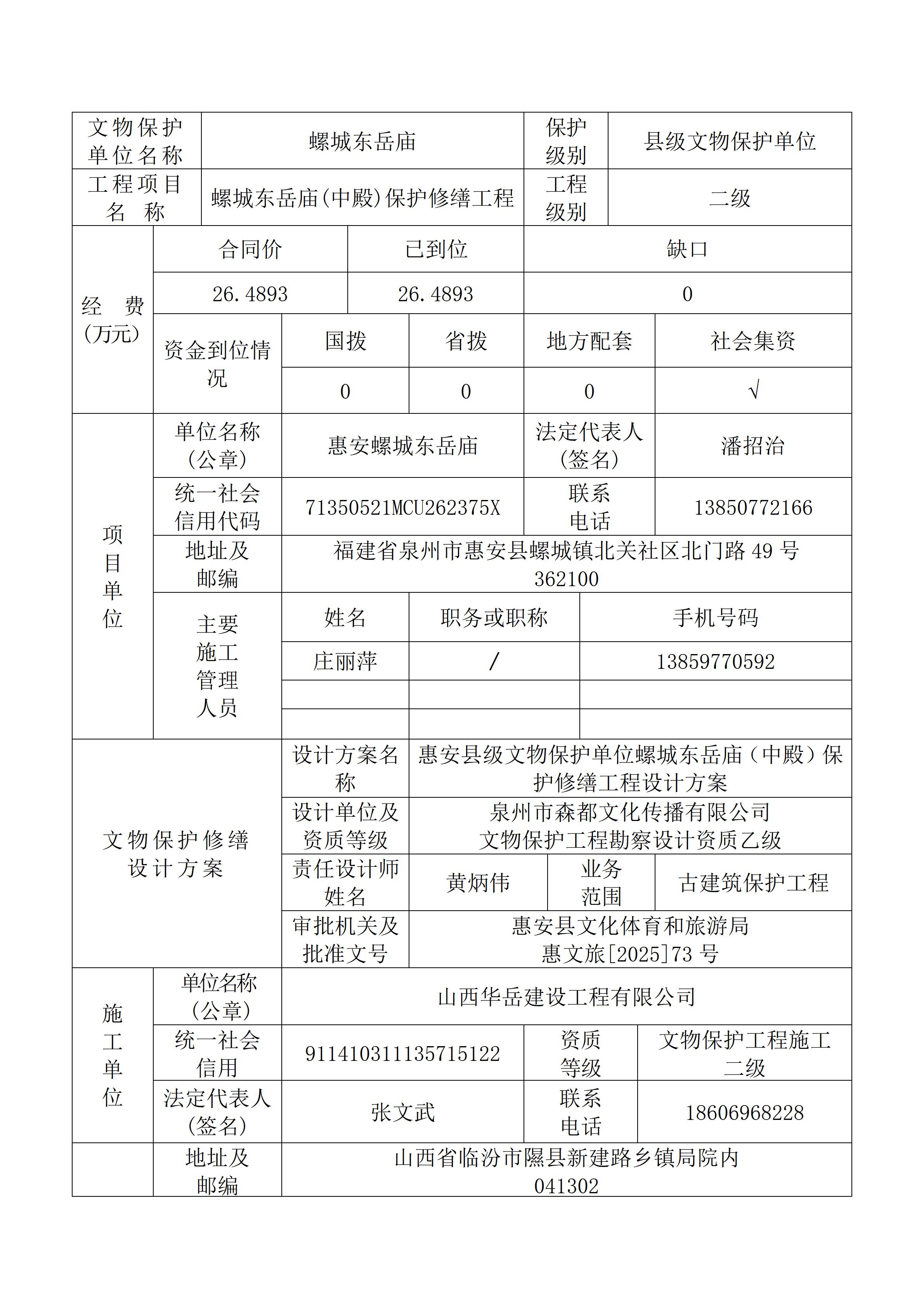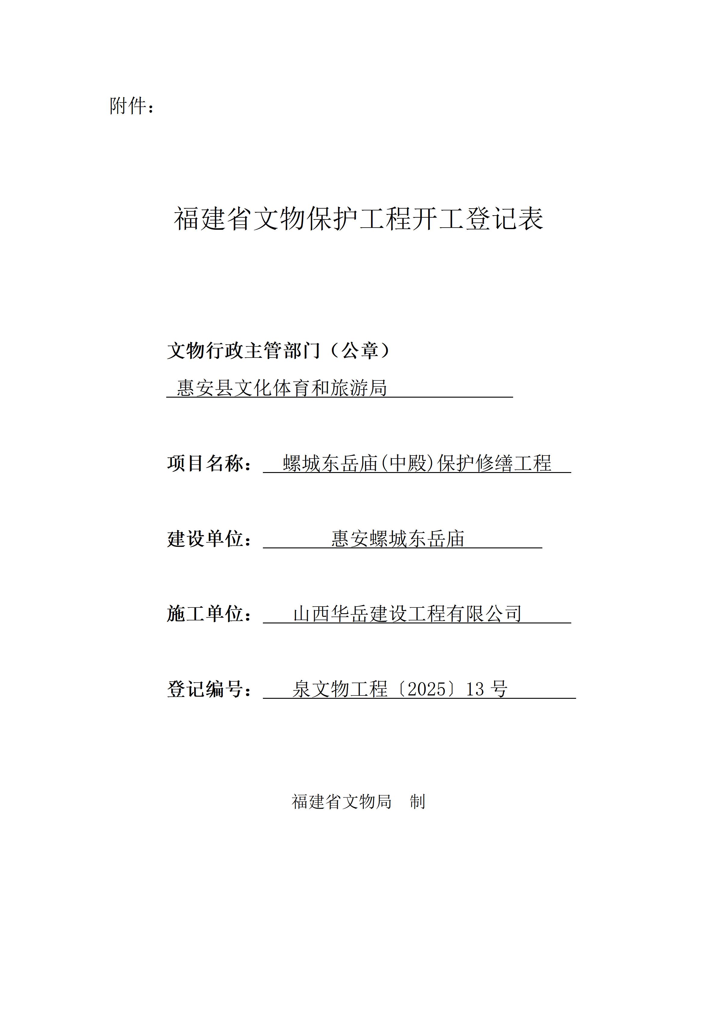 螺城东岳庙(中殿)保护修缮工程开工登记表